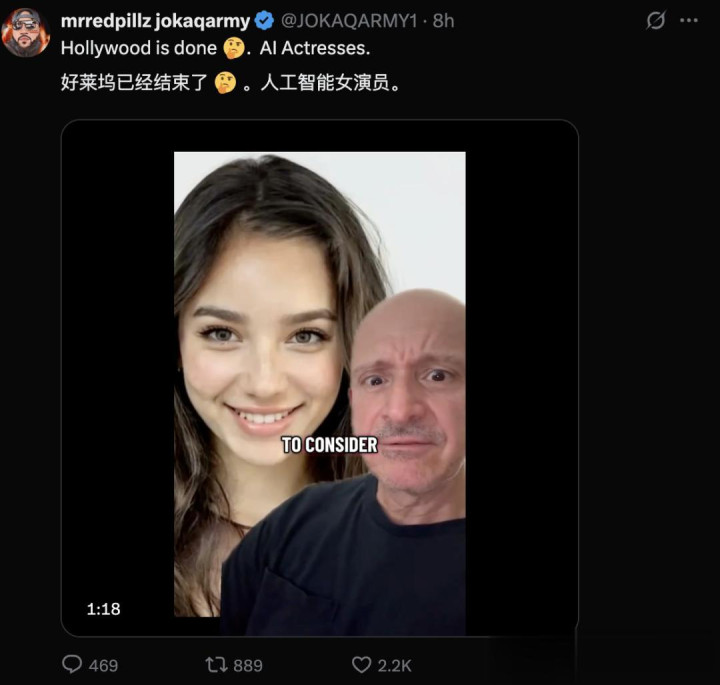 有网友甚至感叹,AI女演员的出现宣告「好莱坞已经结束了」。