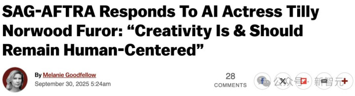 【新智元导读】在9月底的苏黎世电影节上,一位名叫Tilly Norwood的「女演员」亮相,引发媒体和网友热议。「她」由AI制作公司Particle6打造,是全球首批AI生成演员角色之一。Tilly的出现,意味着以Sora为代表的AI视频生成技术正加速渗透,并可能深刻改变影视行业。
