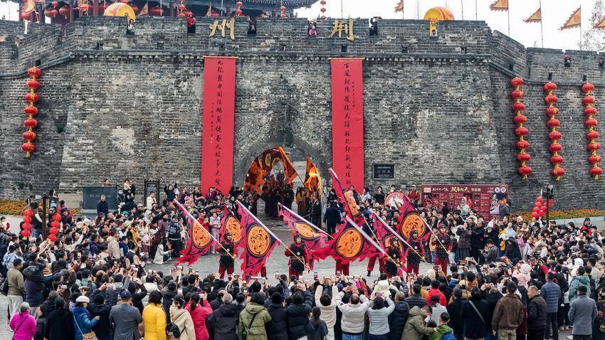 周日睡个懒觉,慢悠悠晃到东门,刚好赶上开城。楚王率队亲自迎宾,战旗飘飘,鼓点阵阵。一秒穿回“楚人尚赤、凤鸟为尊”的年代。15:00-16:00|北门《三国英雄路》实景短剧